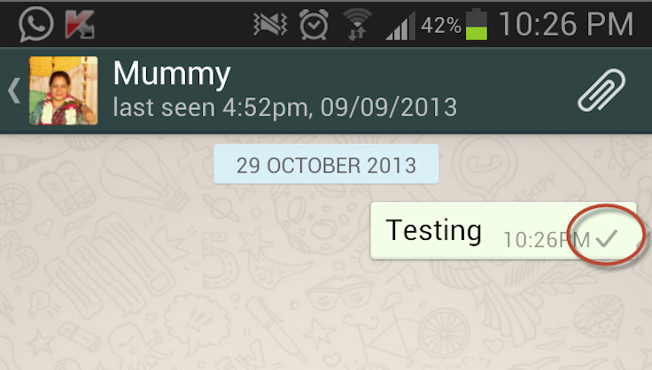 – nel caso in cui il messaggio sia affiancato da una sola spunta, questo significa che il testo è stato caricato sul server di WhatsApp attraverso il nostro smartphone, ma che non è stato consegnato al destinatario;