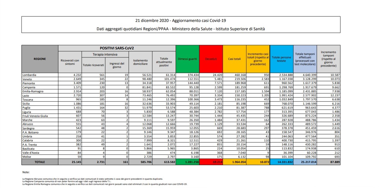 Covid Italia: i contagi di oggi 21 dicembre