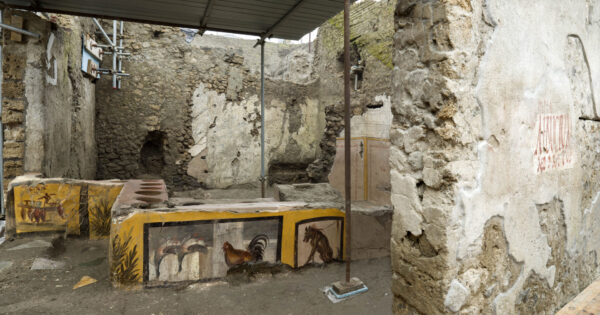 Una scoperta eccezionale all’interno degli Scavi Archeologici di Pompei, solo l’ultima in cronologico in questi ultimi anni caratterizzati da nuove attività di scavo che hanno ridato alla luce reperti di eccezionale valore e bellezza. Questa volta è stato rinvenuto il termopolio della Regio V, una delle antiche tavole calde di Pompei, con l’immagine della Nereide a cavallo, già parzialmente scavato nel 2019. È riaffiorato per intero con altre ricche decorazioni di nature morte, rinvenimenti di resti alimentari, ossa di animali e di vittime dell’eruzione.