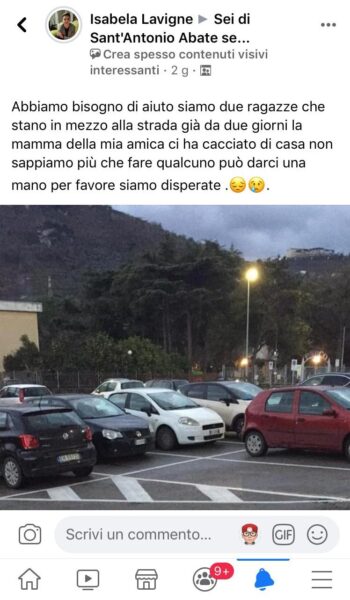 “In un primo momento i Carabinieri non erano riusciti a trovare nessuna soluzione. Allora io per paura e come atto di disperazione ho scritto un post su facebook sul gruppo “sei di Sant’Antonio Abate se..” e lì è partita la rete di solidarietà“.