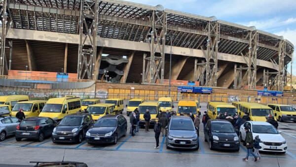 Alcuni scuolabus, con i rispettivi rappresentanti, erano presenti anche fuori lo Stadio Maradona di Napoli per far sentire la loro voce in questa protesta pacifica per i propri diritti.