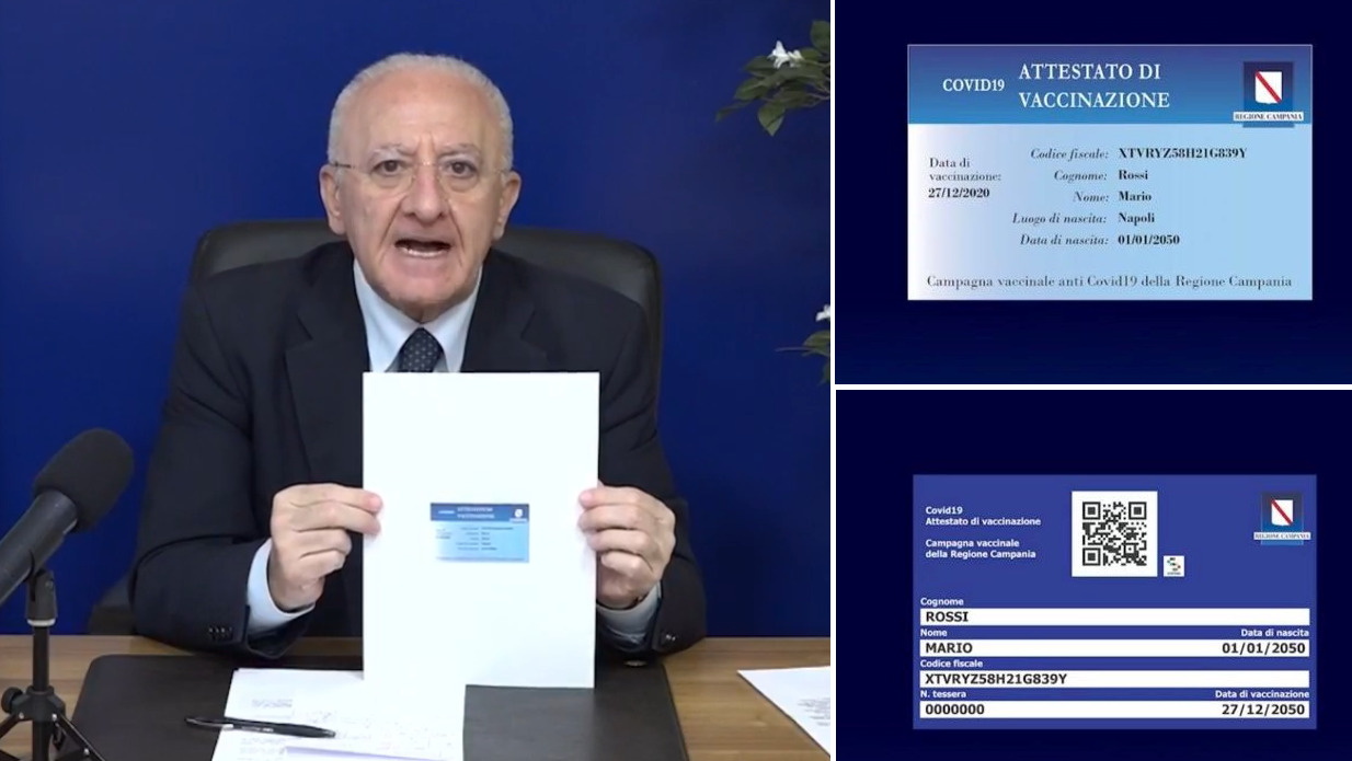 “A ogni cittadino che farà la vaccinazione abbiamo deciso di dare una tessera di avvenuta vaccinazione. Sul retro c’è un chip, possono esibirla per andare al cinema, al ristorante per una condizione di maggiore sicurezza, avendo la certificazione che sono stati vaccinati con la prima e la seconda iniezione.”