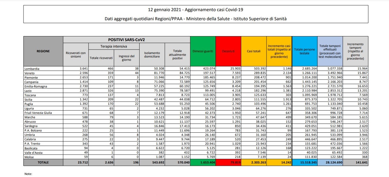 Covid Italia, il bollettino di oggi 12 gennaio – Il Ministero della Salute, che quotidianamente aggiorna sui casi di positività al Coronavirus, ha comunicato i dati di oggi. Sono 14.242 i nuovi casi a fronte di 141.641 tamponi effettuati in più (ieri erano 91.656). La percentuale di positivi ricomincia a calare attestandosi al 10% contro il 13,67% di ieri.
