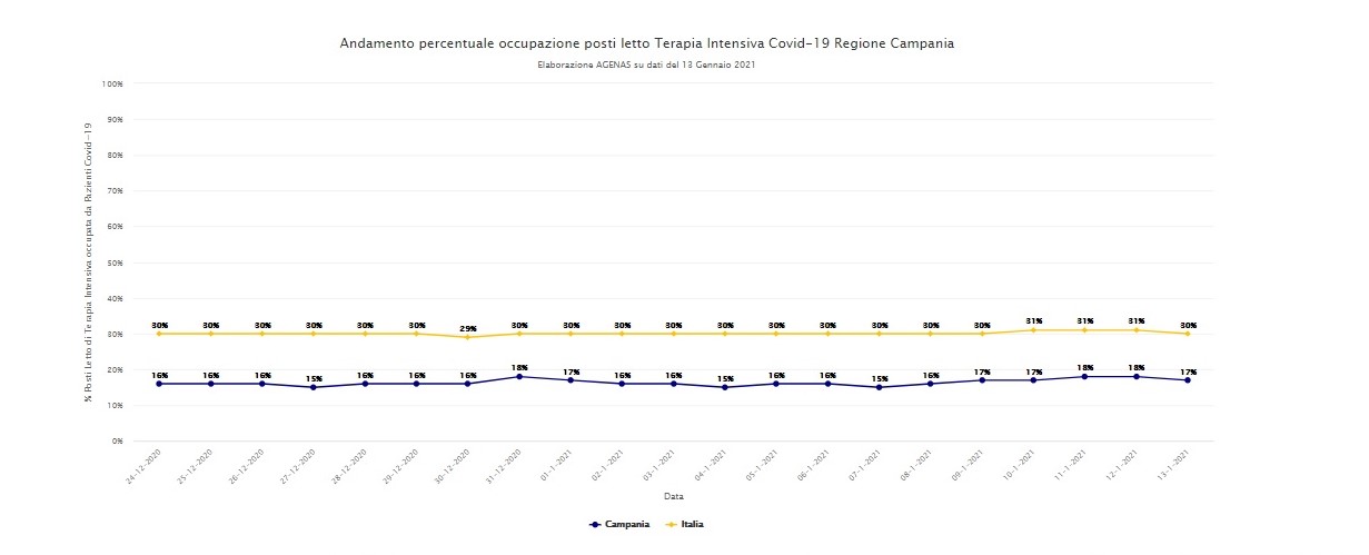 La Campania, dunque, presenta un quadro in netto miglioramento dal punto di vista sanitario. Il rischio di passare in zona arancione poteva essere accentuato proprio da un andamento negativo di tale indicatore ma stando ai dati analizzati il rischio di affollamento delle terapie intensive non dovrebbe essere un problema.