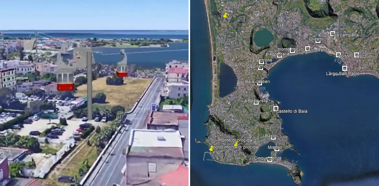 Una cabinovia, 15 stazioni lungo 10.7 chilometri di tracciato da percorrere in 43 minuti. È questo il succo del progetto che ha lo scopo di collegare Pozzuoli e Miseno attraverso un piano di mobilità alternativa, ecosostenibile, che andrebbe a decongestionare le strade con ripercussioni positive sia sul traffico che sulla qualità dell’aria e la vivibilità dei centri storici.