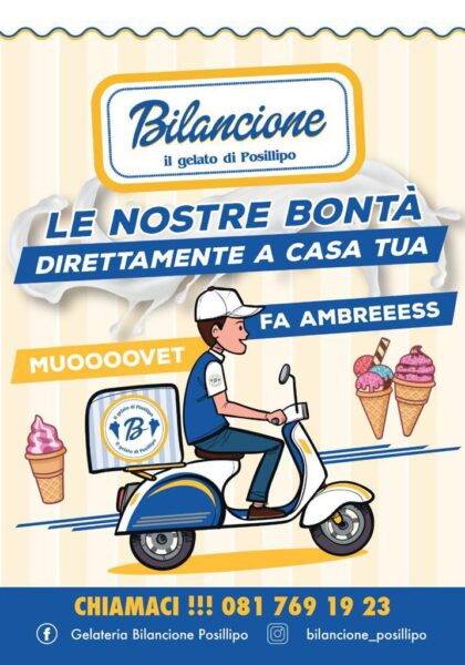 Che sia zona gialla, rossa o arancione, Bilancione cerca di superare questo momento stando vicino ai propri clienti attraverso le consegne a domicilio. Da dopo le ore 18 infatti non è consentita la vendita per l’asporto in alcune attività di ristorazione. Ma la storica gelateria di Posillipo si è adattata al nuovo Dpcm del 14 gennaio e ha trovato un modo per raggiungere tutti gli amanti dei suoi prodotti.