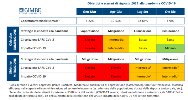 «Considerati i modesti risultati ottenuti dal sistema delle Regioni “a colori” e le incognite legate all’efficacia del vaccino soprattutto in termini di riduzione dei quadri severi di malattia e di trasmissione del virus – continua Cartabellotta – questa rappresenta l’unica strada per mantenere il controllo dell’epidemia sino a fine anno senza affidarci esclusivamente al vaccino. Infatti, continuando con le strategie di mitigazione, sarà realisticamente impossibile riprendere un tracciamento efficace e l’unico auspicio non potrà che essere quello di raggiungere presto adeguate coperture vaccinali. Questo però significa accettare il rischio di una circolazione virale intermedia con gravi ripercussioni sulla salute e sull’economia ancora fino al prossimo autunno».