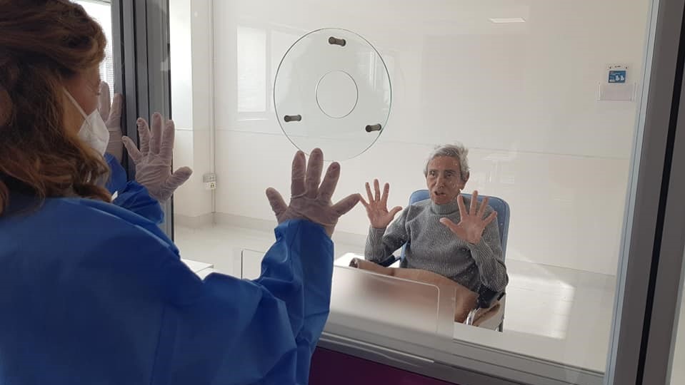 “Nella stanza dove i pazienti incontrano i loro familiari, divisi da un vetro, si sente quanta sofferenza crei il lungo distanziamento forzato e quanto grande sia il potere terapeutico dell’amore”, dichiara la dottoressa Carolina Bologna in un post pubblicato su Facebook.