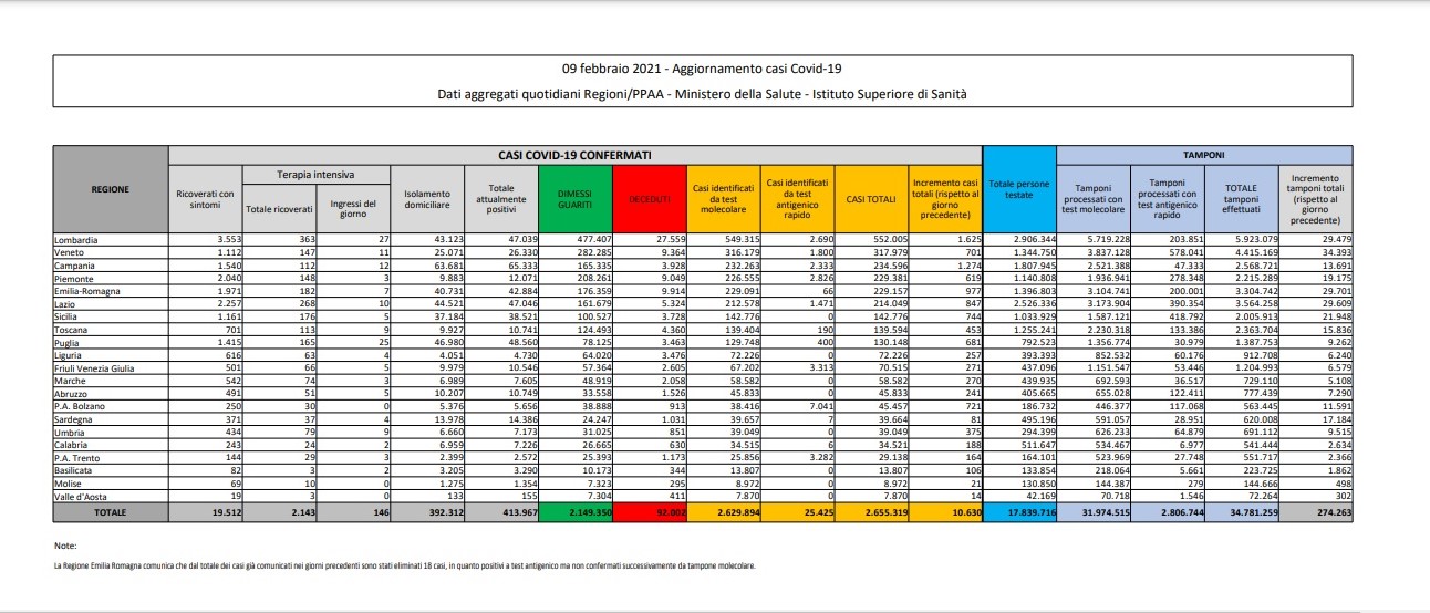 Covid Italia: i contagi di oggi 9 febbraio 2021