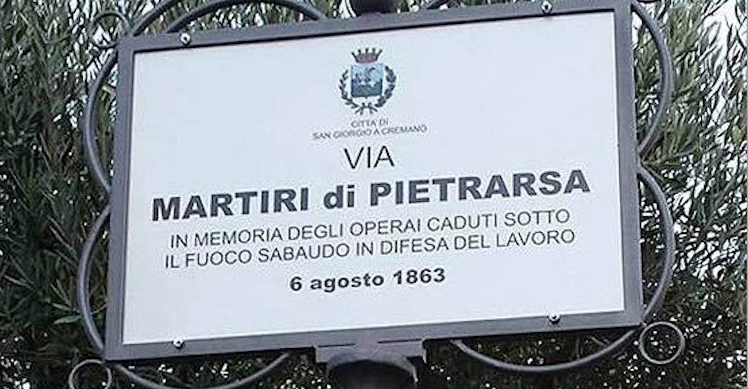 “Oggi, in un momento difficile per tantissime persone, che a causa di questa emergenza, un lavoro lo hanno perso o non riescono a trovarlo abbiamo deciso di realizzare “un monumento” dedicato proprio alla difesa del lavoro, ripensando a quegli operai uccisi dalle truppe sabaude. Sarà in questo luogo che ogni anno si potrà celebrare la ricorrenza del Primo Maggio, Festa dei Lavoratori e il 6 agosto, anniversario di quella tragedia”.