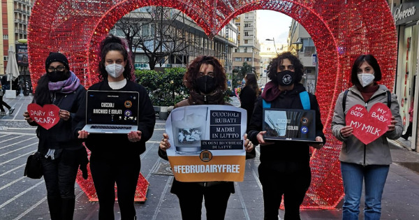 In particolare, il terzo giorno hanno svolto una manifestazione silenziosa, mostrando scene di animali maltrattati tramite dei computer e cartelloni con scritto “februadairy is scary“. La manifestazione si è svolta in un primo momento per le vie della città, mentre successivamente si è spostata nella metropolitana di Napoli.