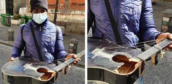 Artista aggredito, gli sfasciano la chitarra. I cittadini: “Aiutiamolo, è il suo mezzo di sostegno”