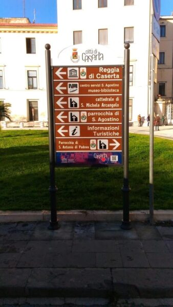 La segnaletica comprende i principali beni monumentali come la Reggia, il Belvedere di San Leucio e Casertavecchia, fino ad arrivare a luoghi più nascosti ma importanti dal punto di vista storico, artistico e monumentale come la chiesa di San Rufo Martire a Piedimonte di Casolla e l’abbazia di San Pietro ad Montes.