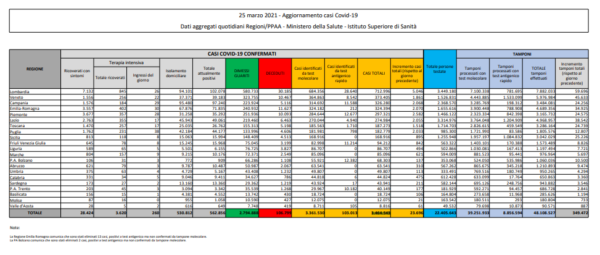 Covid Italia, il bollettino di oggi 25 marzo 2021: +23.696 positivi e 460 decessi