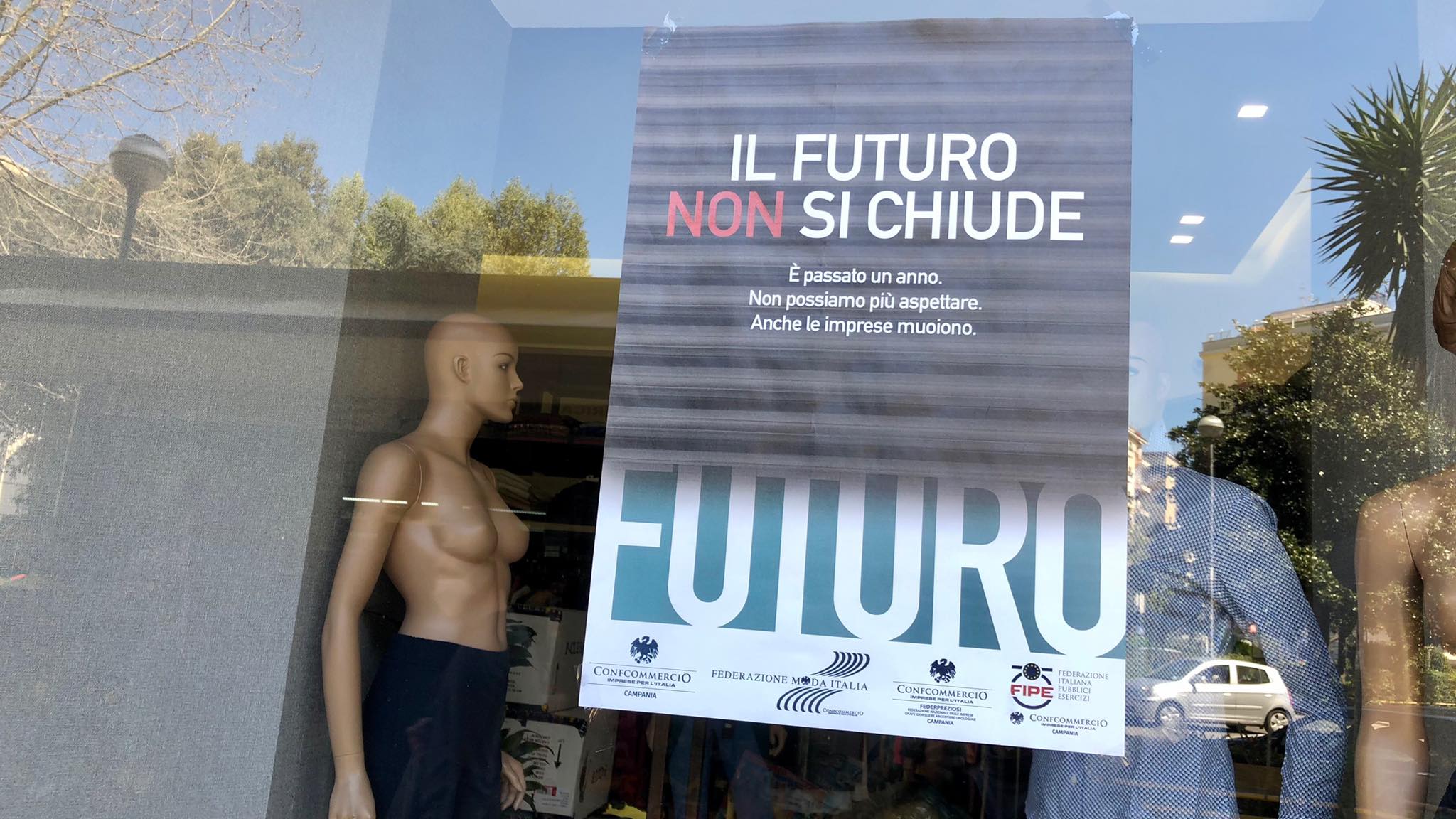 Eloquente la scritta sui manifesti: “Il futuro non si chiude. È passato un anno. Non possiamo più aspettare. Anche le imprese muoiono“. Una categoria ormai esausta che chiede la riapertura, come spiegato dal presidente dell’Associazione Chiaia District, Claudia Catapano:
