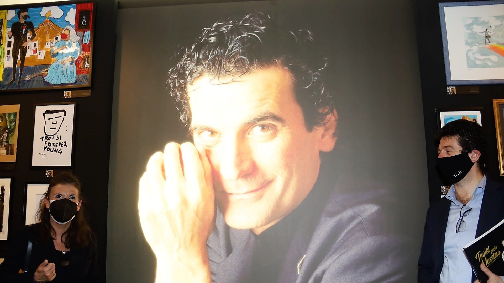 Riscoperta e rinascita sono i temi che hanno accompagnato la realizzazione della mostra, e che la accompagneranno anche nei prossimi giorni, ora che una luce in fondo al tunnel inizia finalmente ad intravedersi grazie all’accelerazione nella campagna vaccinale contro il Covid-19. Gli stessi temi che hanno guidato anche il regista Stefano Veneruso, nipote e collaboratore di Trosi, nell’ideazione dell’evento dedicato allo zio: “Io ho sempre sentito Massimo come un fratello maggiore, e sono sicuro che a lui tutto questo avrebbe fatto molto piacere, specie in un momento come questo. Con noi in casa era l’autenticità e la purezza in persona, ricordo che quando qualcuno si comportava male, usava spesso la parola ‘evita’, quando poi si trattava di qualcosa di davvero grave, allora si spingeva a dire ‘fall’’o fà’, non l’ho mai visto urlare né arrabbiarsi. Io stesso ho dovuto studiare a fondo il personaggio Massimo, e ho capito che la sua arte aiuta a vivere meglio”.
