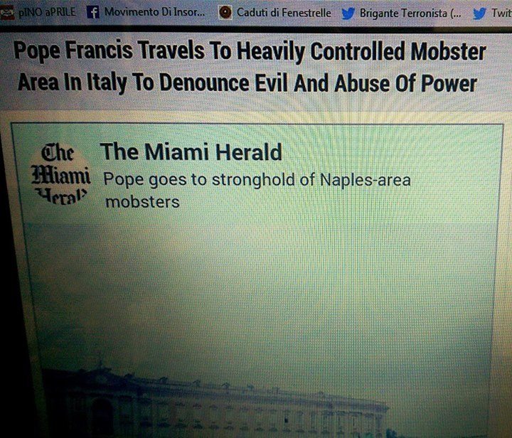 Il giornale raccontava in un articolo la visita del Papa a Caserta, concentrandosi soprattutto sull’incontro che il Pontefice avrebbe dovuto avere con una delegazione dei cittadini della “Terra dei fuochi”. Una volta pubblicata la notizia, ecco la reazione di uno dei lettori “Papa Francesco si reca nella zona itagliana pesantemente controllata dalla mafia per denunciare il male e abuso di potere. Le visite del Papa in Calabria ed in Campania manna per i detrattori”.