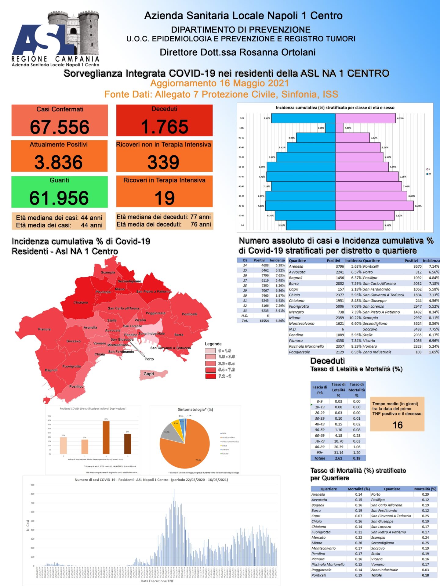 L’Asl Napoli 1 ha diramato il bollettino relativo ai casi Covid ponendo attenzione sull’incidenza registrata nei singoli quartieri. Come si evince, dall’inizio della pandemia sono ben 67.556 i casi che si sono verificati nei quartieri che fanno riferimento all’Asl Napoli 1, di cui 3.836 attualmente positivi.