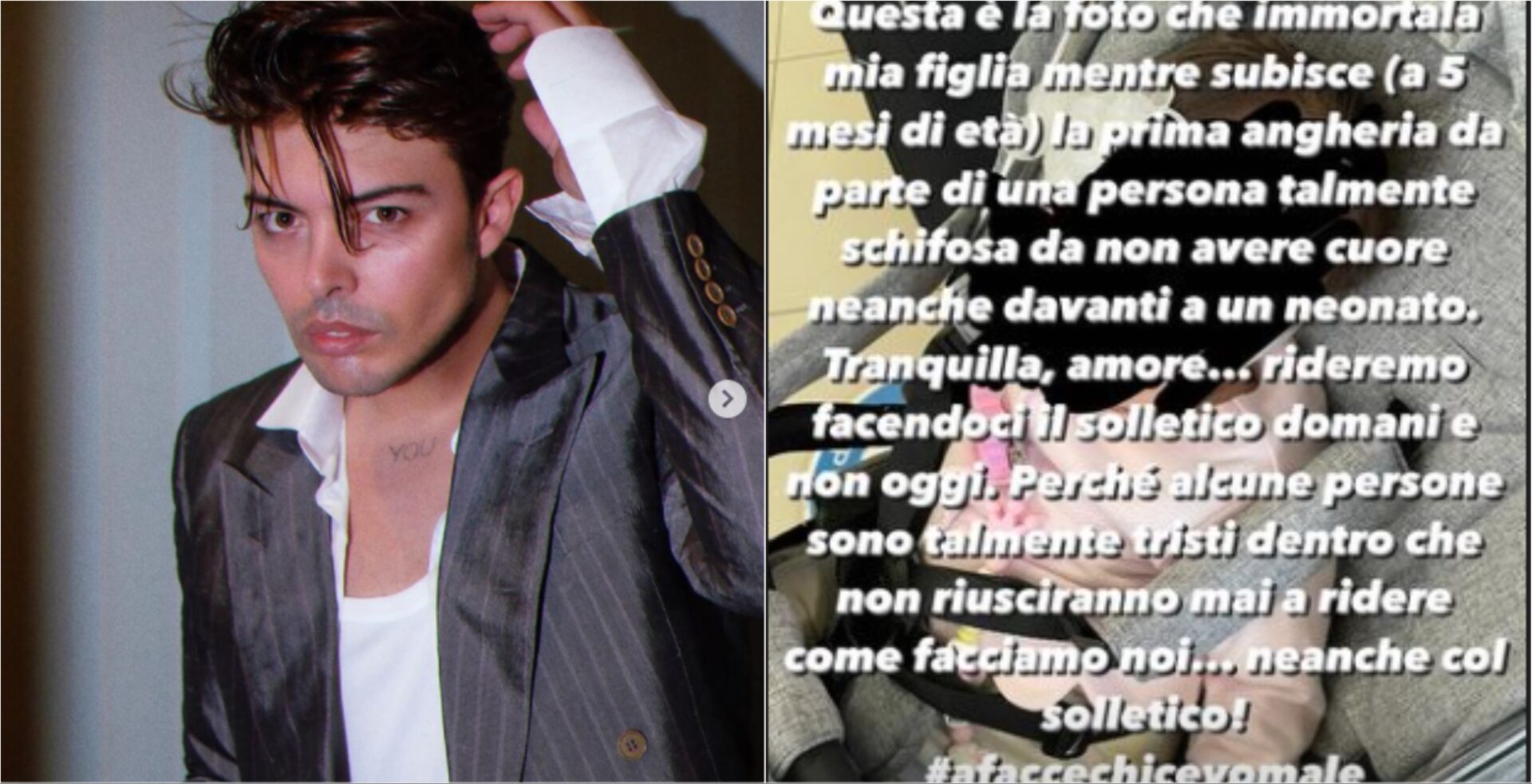 A difendere la compagna ma soprattutto la bimba, ci ha pensato l’artista con un duro messaggio sui social: “Questa è la foto che immortala mia figlia mentre subisce (a 5 mesi d’età) la prima angheria da parte di una persona talmente schifosa da non avere cuore nemmeno davanti ad un neonato.