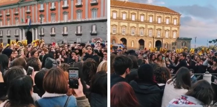 Era il dicembre del 2018 quando il giovane, all’epoca 25enne, giunse in Piazza del Plebiscito trattenendosi con i suoi fan. Sulle note di ‘Tutto per me’ accompagnate dal suono della chitarra e dalla sua voce inconfondibile, i fan napoletani si erano stretti intorno a quel talento, ignari di quel destino che di lì a poco lo avrebbe travolto.