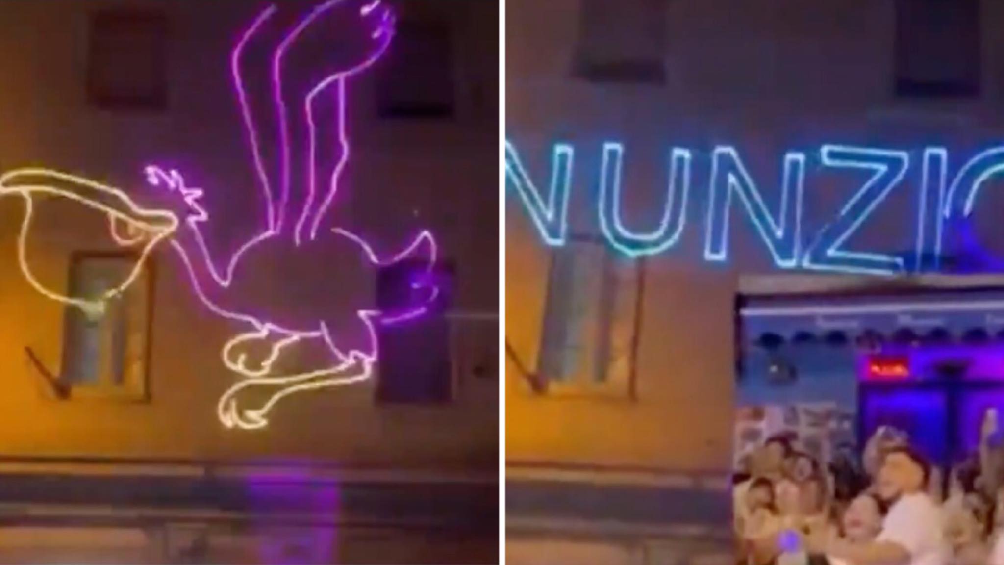 Nel filmato si vedono proiettati su un palazzo alcune luci che ritraggono la storia di due persone: dei cuori che si incontrato, un angelo che scaglia una freccia (Cupido), una cicogna, il brindisi di gioia alla notizia di una futura nascita, aspettando un ‘boy o una girl’. Di sottofondo la canzone di Laura Pausini ‘Celeste’ che accompagna l’ultimo countdown, quello sul gender reveal, il mio nome è: Nunzio!. Alla notizia, esplode la festa con tanto di fuochi d’artificio.