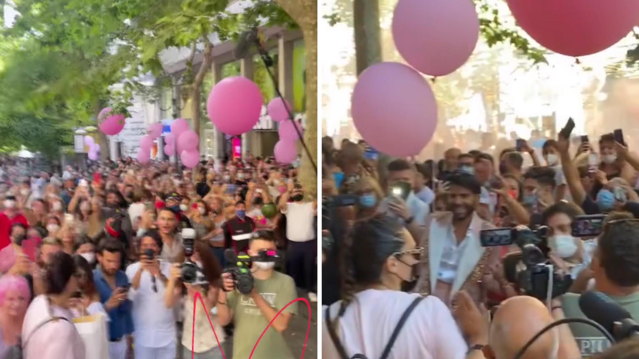 Il salone si trova presso il primo piano dello Store Coin di Via Scarlatti (Vomero). I fumogeni rosa hanno segnalato l’arrivo di Federico, trionfale, immortalato da centinaia di stories su Instagram.