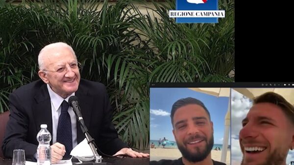 Il Presidente della Regione Campania, Vincenzo De Luca, ha voluto avviare un collegamento con Lorenzo Insigne e Ciro Immobile, reduci dal successo degli Europei, per congratularsi pubblicamente con loro.