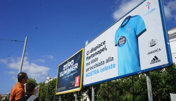 Nei giorni scorsi a Napoli sono apparsi dei cartelloni pubblicitari molto particolari che hanno attirato l’attenzione di tutti. Il Celta Vigo, squadra che milita nella “Serie A” spagnola, ha deciso di pubblicizzare la nuova maglia celeste anche nella città partenopea mettendola a paragone con quella del Napoli.