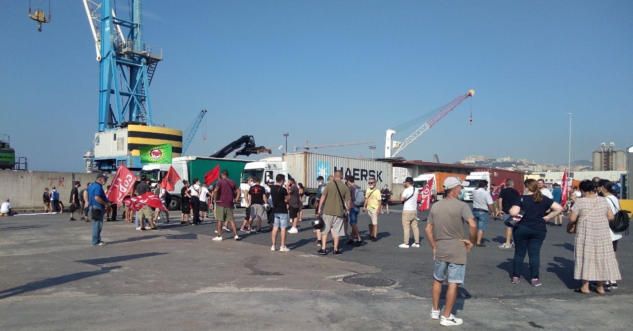 Da questa mattina alle 8:30 il porto commerciale di Napoli è completamente bloccato a causa di un sit-in avviato da un gruppo di manifestanti aderenti alle organizzazioni Iskra, SICobas e Movimento di Lotta – Disoccupati “7 Novembre”, che stanno impedendo qualunque ingresso o uscita dei mezzi pesanti dal porto.