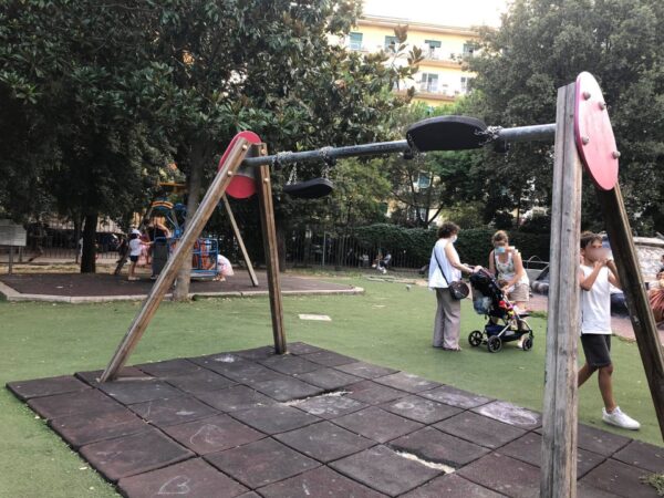 NAPOLI – Giostre rotte, bambini in lacrime in attesa di due soli posti per le altalene, rifiuti ovunque e pavimento sconnesso che fa perdere l’equilibrio persino ai grandi. Si presenta così il Parco Mascagna, uno dei pochi luoghi verdi del Vomero destinati ai più piccoli. I Giardinetti di Via Ruoppolo sono infatti un punto di ritrovo fisso per chi vuole far svagare e prendere un po’ d’aria ai propri figli. Un piccolo polmone verde in mezzo a tanti palazzi e cemento che però da anni versa in uno stato di abbandono e degrado.