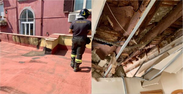 “Napoli, intervento dei Vigili del Fuoco nel centro cittadino per il crollo parziale del solaio di un palazzo di 4 piani: nessuna persona coinvolta, evacuate a scopo cautelativo 12 abitazioni. In atto verifiche tecniche e la messa in sicurezza della struttura“.