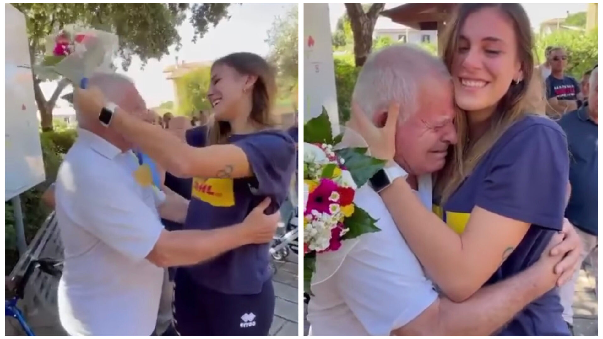 Appena si sono visti, i due non sono riusciti a dirsi alcuna parola, ma si sono abbracciati con lacrime di commozione. Ed è proprio dopo questo lungo scambio di abbracci e sguardi commossi, che Alessia si è tolta la medaglia d’oro e l’ha messa al collo dell’amato nonno. Un gesto, quest’ultimo, che mostra il grande affetto e la grande riconoscenza che la campionessa europea di pallavolo ha nei confronti di chi l’ha crescita e di chi ha sempre creduto in lei.