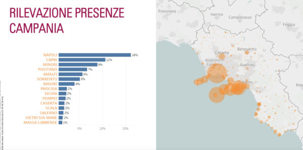 Nel dettaglio i tag arrivano principalmente da Napoli (16%), seguita da Capri (11%), Minori (9%), Positano (7%), Amalfi (6%) e Sorrento (5%).