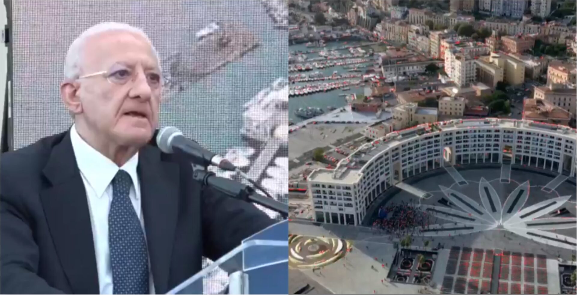 Abbiamo regalato altri 500 metri di lungomare. I parcheggi saranno attivi tra 40 giorni, prima delle Luci d’artista, mi auguro. Faremo Luci d’artista, quest’anno. Ai salernitani dico: non dobbiamo scambiarci niente ma negli anni e nei decenni ricordate ai figli ed ai figli dei vostri figli che tutto questo c’è e ci sarà perché c’è stato uno che ha avuto il coraggio di andare avanti senza fermarsi davanti a niente e a nessuno“.