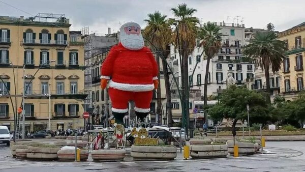 NAPOLI, IL BABBO NATALE GIGANTE DI PIAZZA VITTORIA VERRA’ SMONTATO