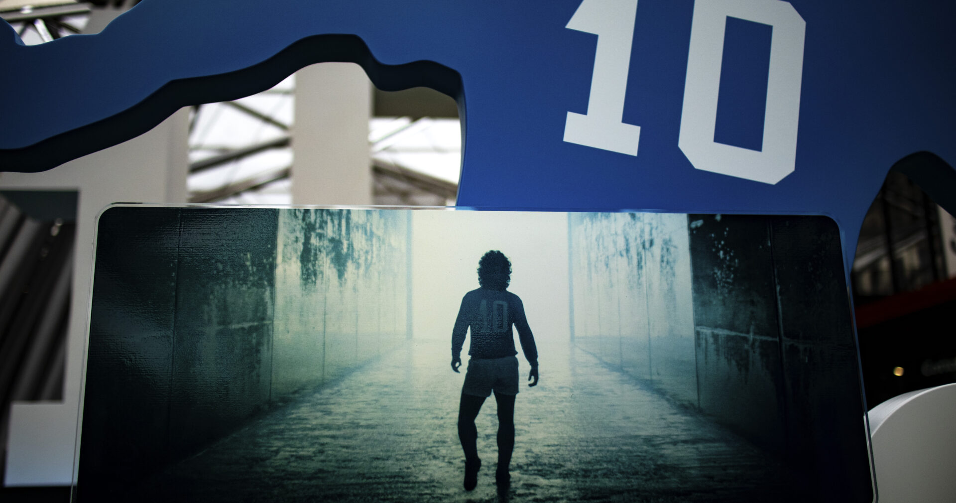 Un numero 10 gigante domina la galleria commerciale sotterranea di Piazza Garibaldi: è l’inizio della mostra “Maradona: Sogno benedetto“.