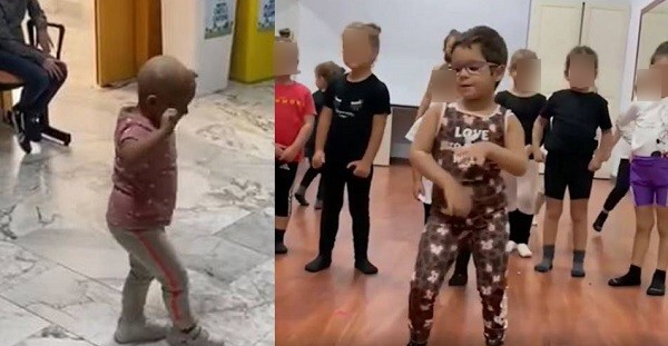 La piccola dopo un anno è cresciuta, sta bene e continua a ballare. Ma questa volta non nel reparto di un ospedale ma in una stanza da ballo piena di amici e coetanei.