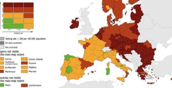 Va peggiorando la situazione dei contagi Covid-19 in Italia. Questo è quanto emerge dalla mappa Ue del rischio elaborata dall’Ecdc, il Centro europeo per la prevenzione e il controllo delle malattie, che classifica le zone a maggiore o minore pericolo coronavirus.