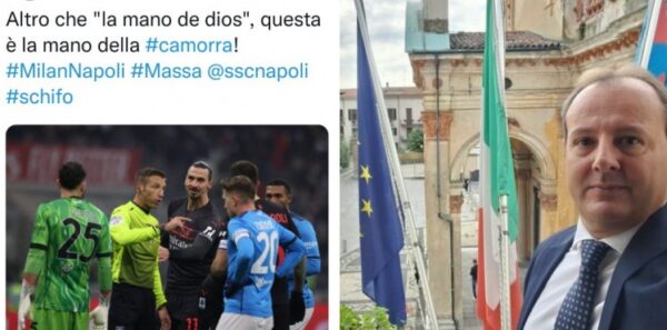 A scatenare il commento del vicesindaco piemontese è stata la decisione dell’arbitro Massa di annullare il gol del calciatore rossonero Franck Kessié. Nel suo tweet, divenuto virale e poi successivamente rimosso, si legge: “Altro che ‘la mano de Dios’, questa è la mano della #camorra”.