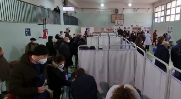 Bimbi e genitori sono in fila da stamattina fuori la palestra. Sono 246 i bambini che da oggi verranno sottoposti al vaccino. La preside ha dovuto fermare le prenotazioni ieri perché le adesioni erano tante. I bambini vengono accolti dal personale della ASL Napoli 1 che li intrattiene e ad ognuno viene consegnata una medaglia.