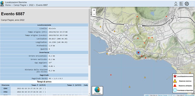 A registrare l’evento sismico sono stati L’INGV e l’Osservatorio Vesuviano. Una scossa di magnitudo 1,9 alle 20.37, alla profondità di 1 km.