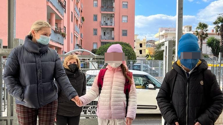 “Stamattina l’emozione, la commozione, il desiderio di andare avanti, il timore di un gesto sbagliato e poi l’attesa, e poi l’ingresso. E decine di sguardi accoglienti, fieri e luccicanti si sono incrociati. Non abbiamo avuto bisogno di parole, il linguaggio si esprime in mille forme: un applauso sonoro e un “picchetto d’onore” ha accompagnato nel loro ingresso a scuola, al plesso Don Milani dell’ IC Omero-Mazzini-Don Milani, Dmitry e Viktoriia. Dall’orrore di una guerra che sparge morte e devastazione ovunque, al timido sorriso di due bambini che ci insegnano la dignità, trasmettendo un messaggio di speranza di cui tutti abbiamo bisogno”.