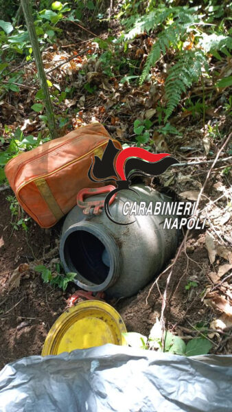 I Carabinieri della stazione di Gragnano che monitorano costantemente anche quel versante della montagna non hanno lasciato neanche un ettaro inesplorato e hanno fatto questa scoperta che segna un duro colpo alla criminalità organizzata. È stato infatti trovato un verso e proprio arsenale per uccidere: un mitragliatore con silenziatore, tre pistole cal. 9 – una con matricola punzonata e una risultata provento di un furto commesso nel 2017 in un comando di polizia municipale in provincia di Torino – e 65 di proiettili dello stesso calibro. Le armi erano confezionate in modo da resistere all’umidità e al tempo in una zona battuta anche dalle temperature gelide. Accanto alle armi anche la droga: 18 buste al cui interno erano racchiusi circa 18 chili di marijuana già essiccata e pronta per lo smercio. Non mancano i bilancini e materiale vario per la preparazione delle dosi. La droga, invece, era imballata in atmosfera protetta per mantenere inalterata l’essenza della cannabis. Tutta l’erba è stata distrutta.