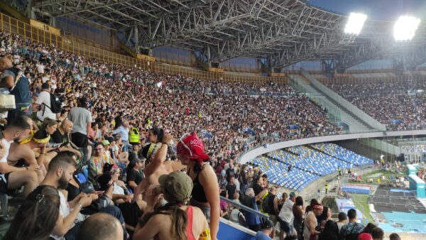 Chi si aspettava un grande spettacolo non è rimasto deluso. Vasco Rossi è finalmente tornato a Napoli ed ha regalato, ieri sera, emozioni enormi ai suoi fans accorsi in migliaia allo stadio Maradona, da tutta Italia e specialmente dal Sud. Visto il sold out, numerosi fan si sono riuniti all’esterno dello stadio per ascoltare le canzoni, affidando all’immaginazione il compito di “vedere” cosa stesse accadendo all’interno.