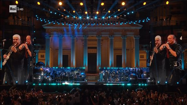 Infine, ha chiuso lo spettacolo omaggiando colui che ha definito “il più grande di tutti”: Pino Daniele. Sulle note di Napule è e le immagini di Pino proiettate sullo schermo, la folla ha accompagnato Gigi intonando la celebre canzone, illuminando la piazza con le luci dei cellulari.