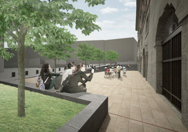 Museo e piazza Cavour, sarà liberato dall’attuale cancellata di chiusura per assumere la funzione di piazza pubblica, ripristinando il rapporto diretto edificio-città, visibile in molte vedute storiche. I vani posti al piano terra su questo fronte, attualmente utilizzati come depositi e locali tecnici, saranno bonificati e destinati ad attività di valorizzazione della vita del quartiere.