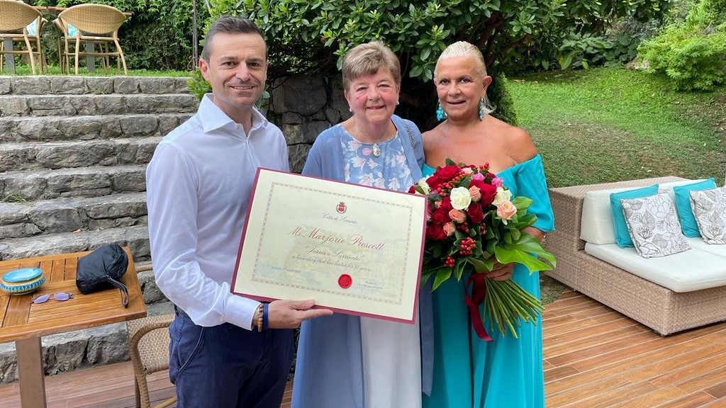 Questa mattina, a Sorrento, si è svolta la cerimonia di premiazione per Marjorie Prescott, la turista inglese di 81 anni omaggiata con una targa per la sua “fedeltà” alla terra delle sirene e non solo: ormai da mezzo secolo, ogni anno non può fare a meno di tornare in penisola sorrentina, con tappe fisse anche a Napoli e in Costiera Amalfitana.