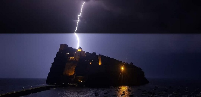 Una tempesta di fulmini si è abbattuta sull’isola di Ischia stanotte. Le foto che stanno circolando sul web e sui social sono spettacolari.
