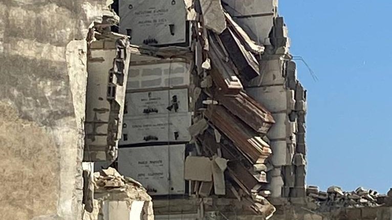 A venire giù, stavolta, è stata una enorme parte della Congrega di Gesù Risorto. Gli scatti diffusi dai cittadini mostrano ciò che resta dell’ennesima facciata distrutta con tanto di bare ammassate ed in bilico, nel vuoto. Una scena surreale che ha scatenato l’indignazione dei familiari dei defunti: hanno segnalato più volte lo stato di incuria del luogo eppure, nemmeno dopo l’ultima chiusura, la situazione sembra cambiata.