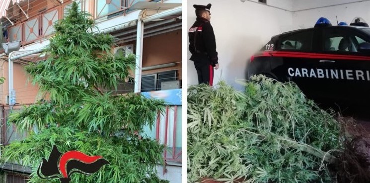 A Melito di Napoli i carabinieri della locale Tenenza hanno sequestrato una pianta di marijuana, dalla forma simile a quella di un albero di Natale. Denunciata una donna di 57 anni del posto.